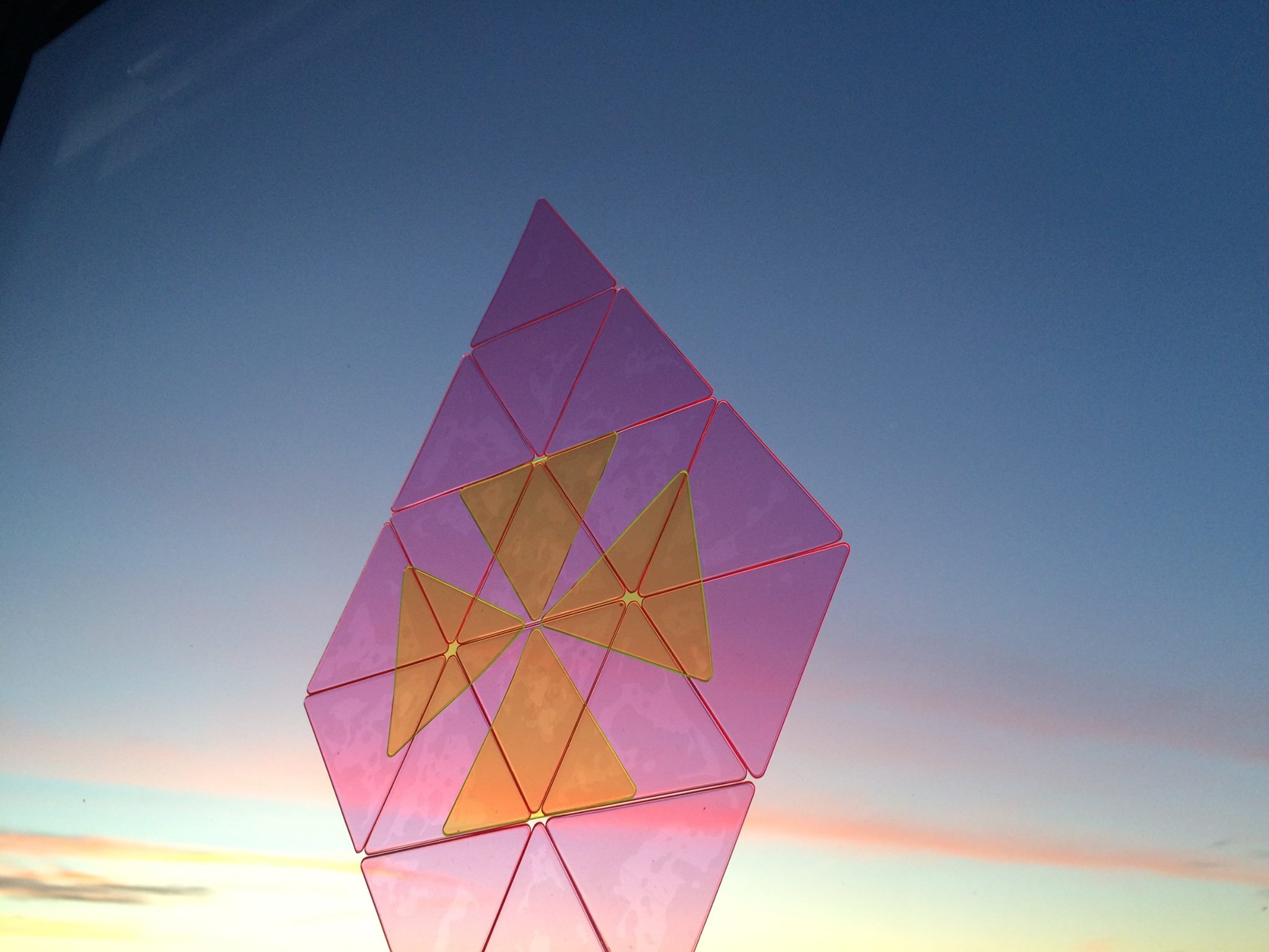 Su Japoniškos San Kaku Mado dėlionės trikampiais galima lengvai kurti ir perkurti įvairius raštus, objektus ir figūras. Kūrybai, išslaisvinančiai vaizduotę. Kiekviename rinkinyje dviejų spalvų vienodo dydžio trikampėliai, kuriuos smagu klijuoti ant langų, nuimti ir vėl klijuoti! Dėlionė pagaminta iš specialios vinilo rūšies, kuri puikiai limpa būdama nelipni ir ypač tinka lipinimui ant langų. Žaislas lavina vaizduotę, kūrybiškumą, geometrinį mąstymą.