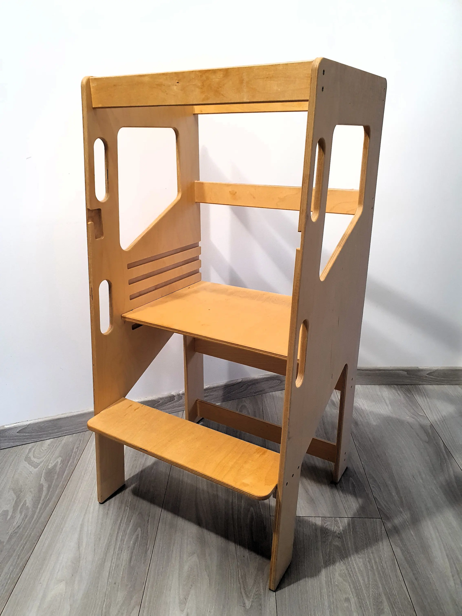 Montessori klasika – vaiką įgalinantis bokštelis, kuris padeda saugiai bei savarankiškai tyrinėti aplinką, skatina kūrybiškumą, stiprina ryšį su tėvais, ugdo pasitikėjimą savimi. Ergonomiškas ir tvirtas bei stabilus Montessori bokštelis gali būti reguliuojams pagal vaiko poreikius: stovėjimo salelė kilnojasi aukštyn-žemyn.