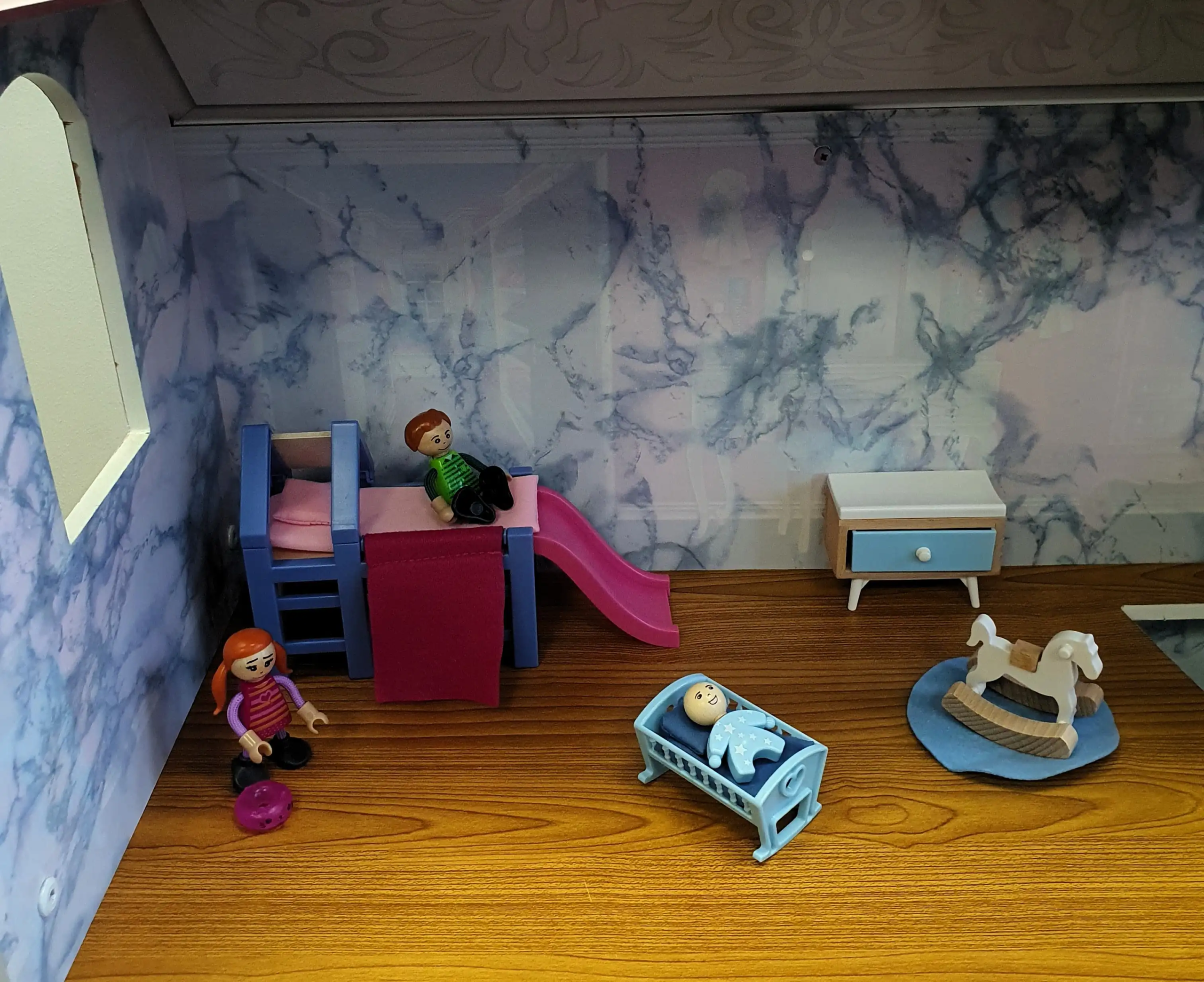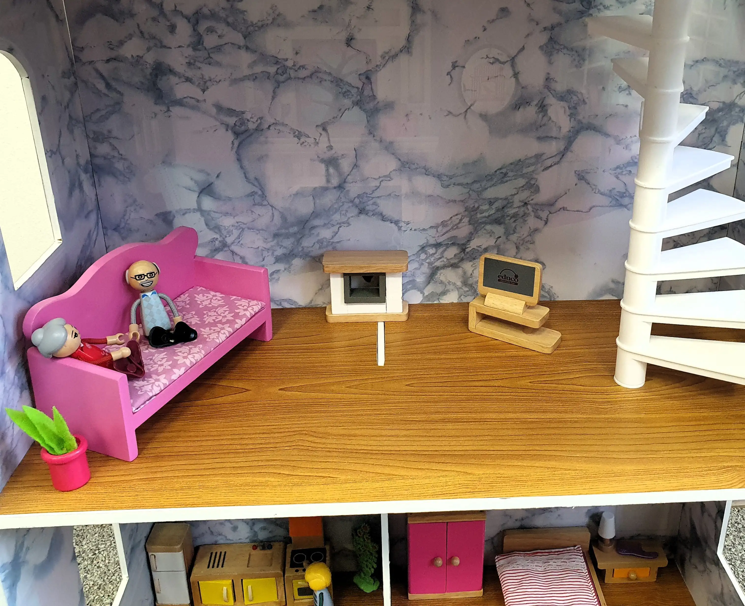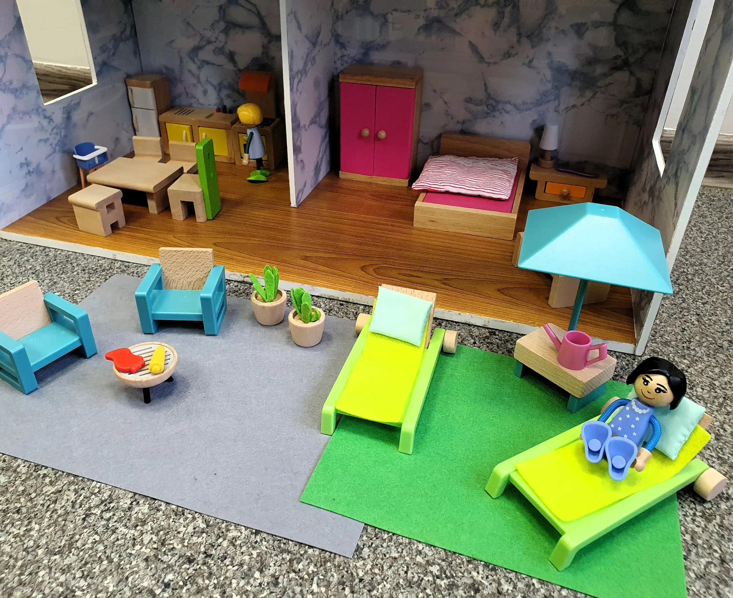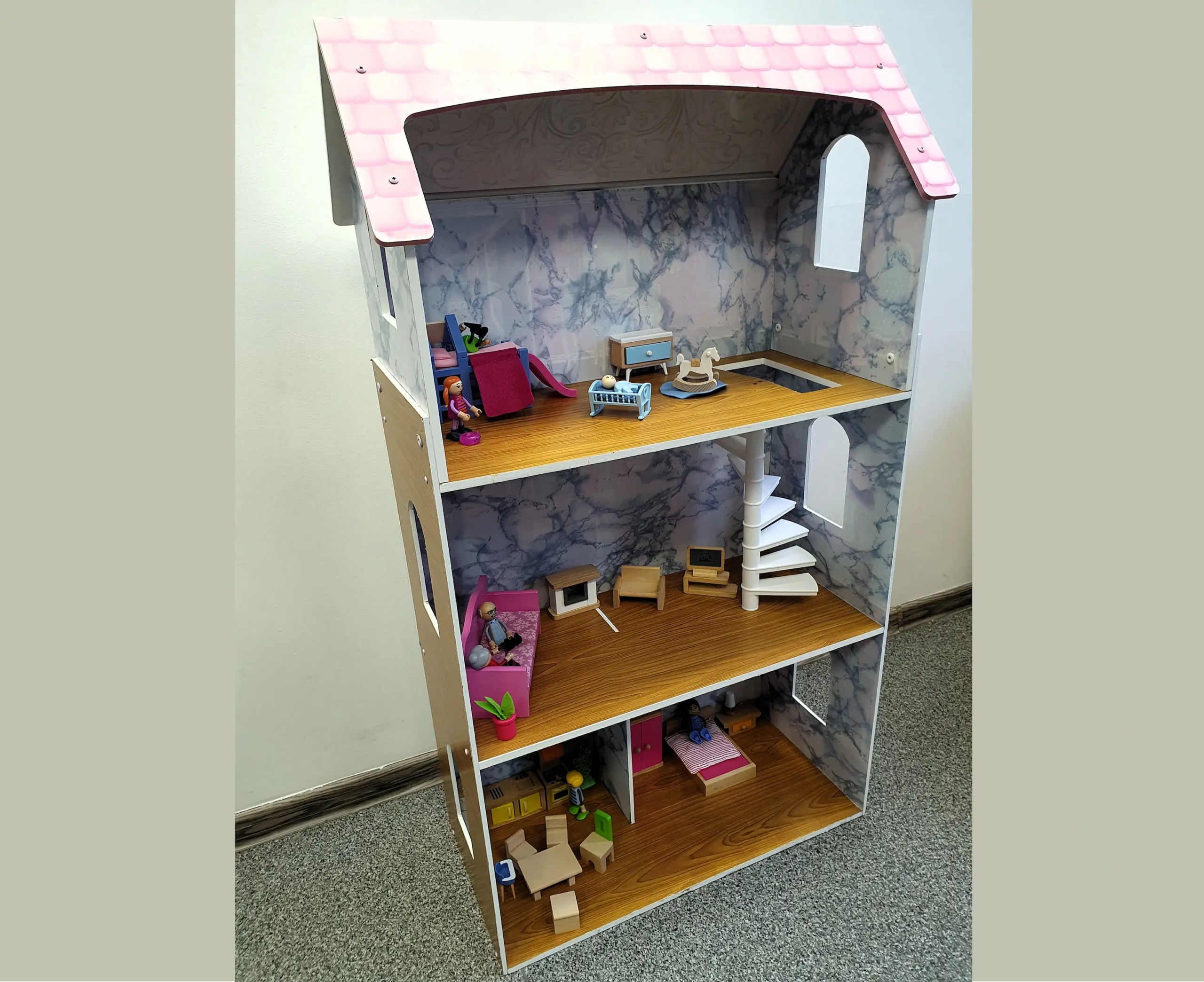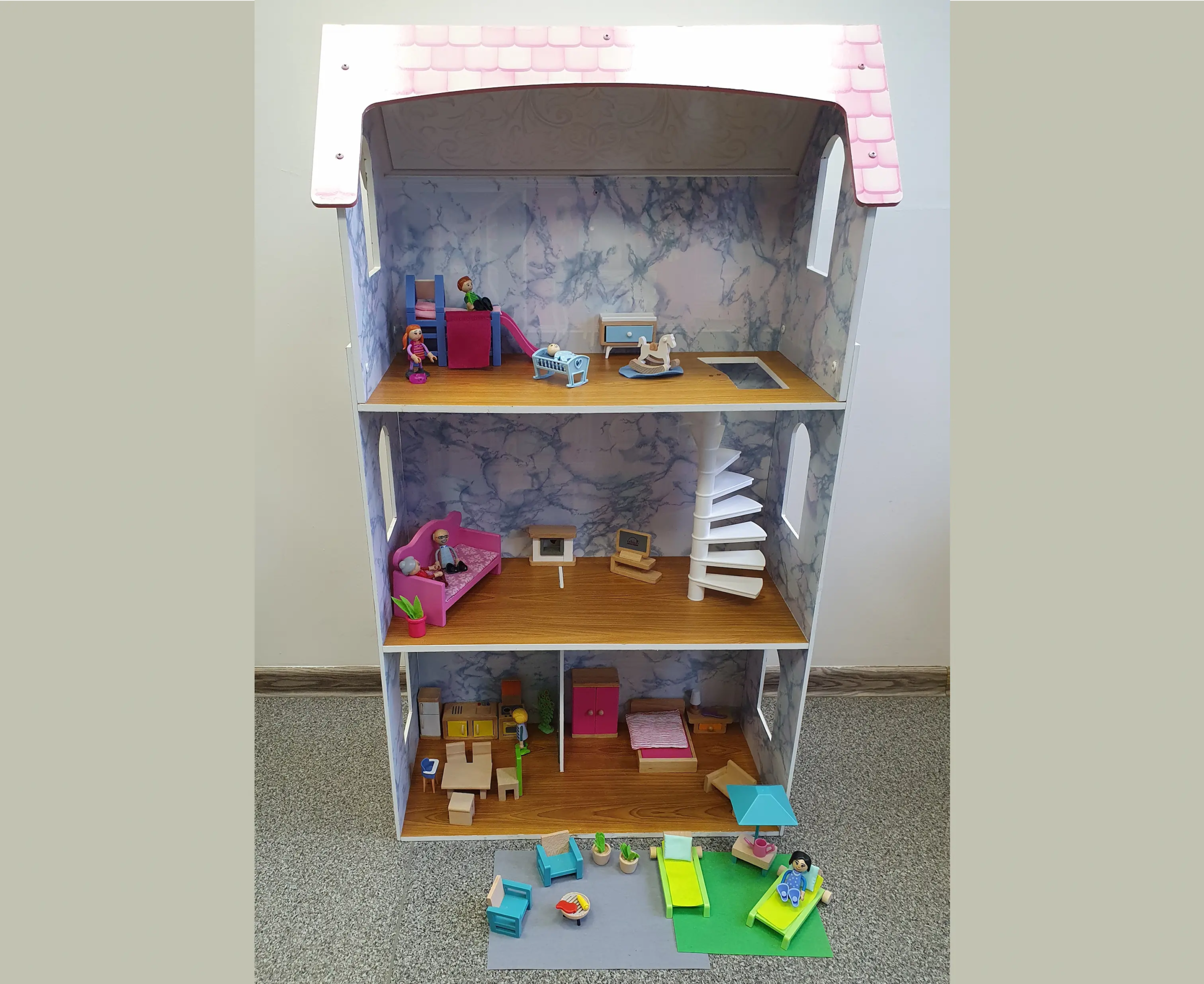 Didelis (tikrai didelis!) trijų aukštų namas su baldais ir jame gyvenančia šeima. Idealiai tinka interaktyviems ir vaizduotės vaidmenų žaidimams, ugdyti kūrybiškumą, socialinius įgūdžius, plėsti vaiko žodyną.